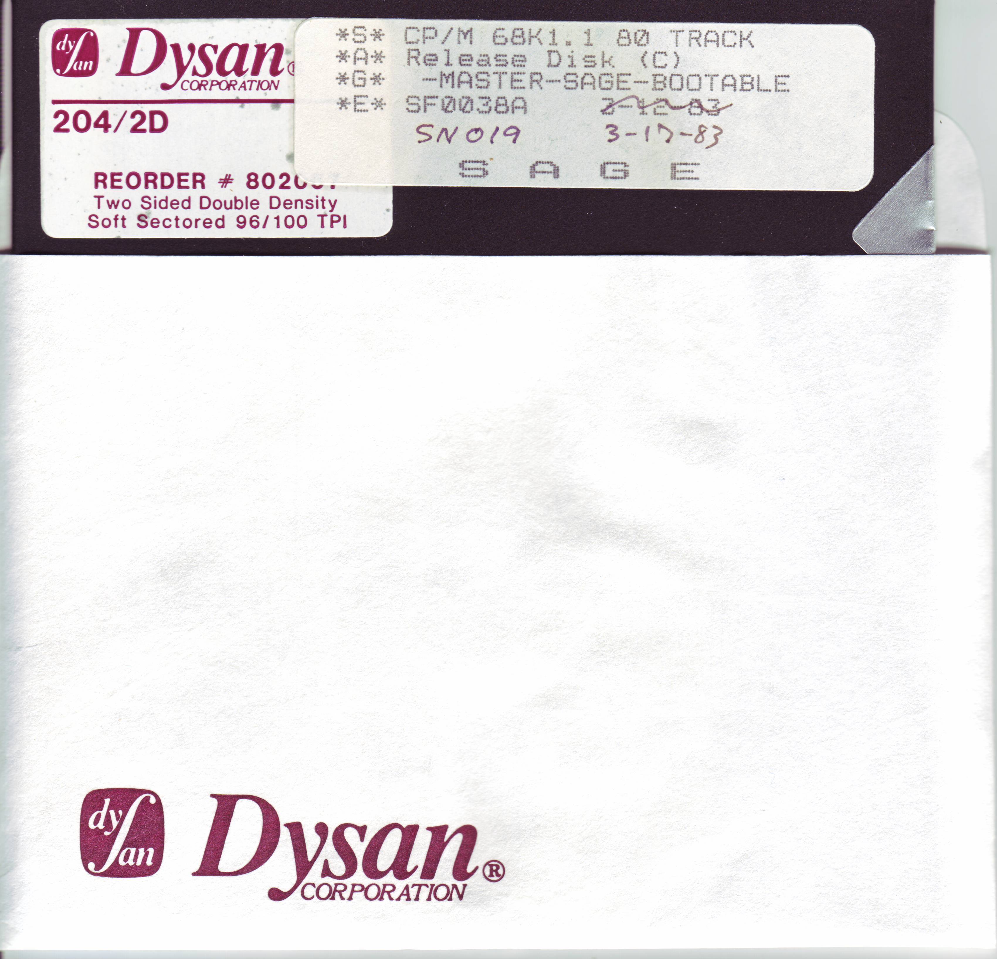 Sage CP/M Diskette images using Dave Dunfield’s ImageDisk program. You can get it at: